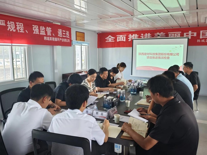 6月11日,陜西建材科技公司副總經理杜永康一行到韓城昇隆公司檢查指導項目推進及安全環保情況。該公司領導班子、參建單位主要負責人陪同檢查。
