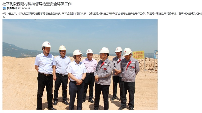 6月12日上午,陜煤集團副總經理杜平帶領安全監察部、環保監察部等部門人員,到陜西建材科技公司非煤礦山督導檢查安全環保工作。陜西建材科技公司黨委書記、董事長張超暉及相關領導班子成員、部門負責人等陪同檢查。