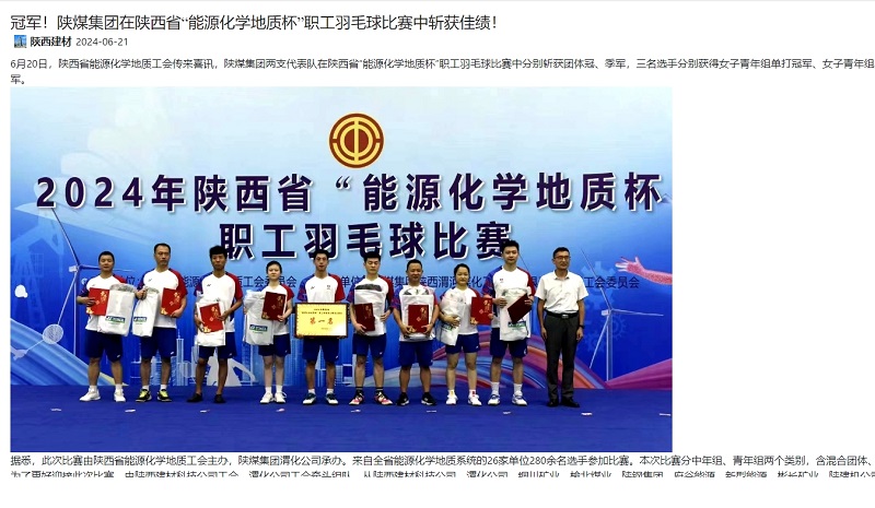 奮進(jìn)陜煤、陜煤集團(tuán)官網(wǎng) | 冠軍!陜煤集團(tuán)在陜西省“能源化學(xué)地質(zhì)杯”職工羽毛球比賽中斬獲佳績(jī)!