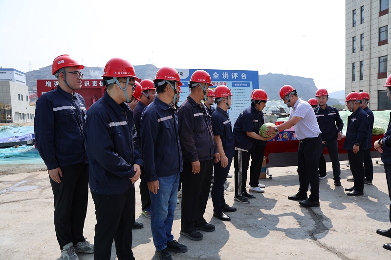 烈日炎炎,暑氣逼人。陜北已然開啟了“燒烤模式”,持續的高溫酷暑“烤”驗著每一位堅守在一線崗位的職工們,也時刻牽動著公司領導的心。7月9日上午,陜西建材科技公司黨委委員、副總經理郭正亮到神木恒穩公司開展“送清涼”慰問活動,向高溫下兢兢業業的職工們送去一絲清涼和關懷,助力廣大職工清涼度夏,為項目建設安全推進保駕護航。