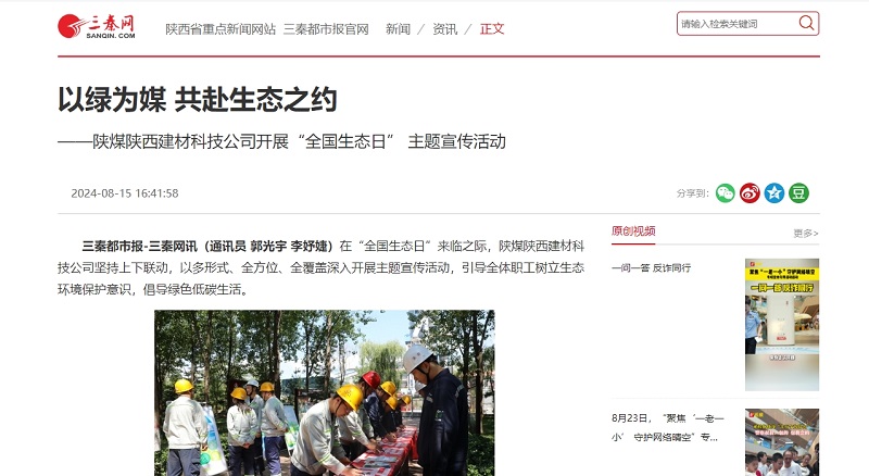 三秦網(wǎng) | 以綠為媒 共赴生態(tài)之約——陜煤陜西建材科技公司開(kāi)展“全國(guó)生態(tài)日” 主題宣傳活動(dòng)