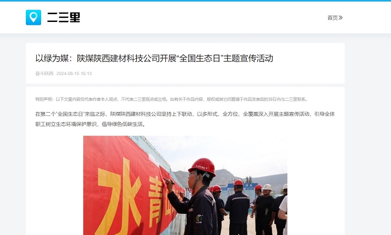 今日頭條、二三里 | 以綠為媒:陜煤陜西建材科技公司開展“全國生態日”主題宣傳活動