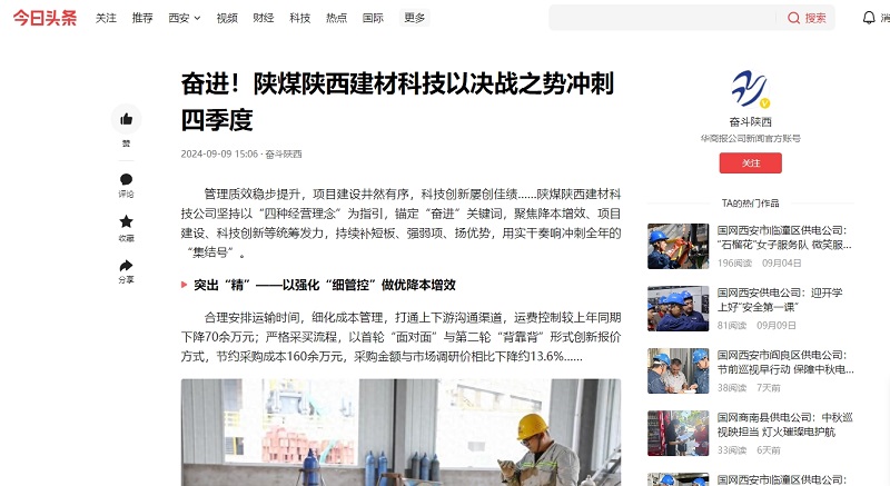 今日頭條、二三里 | 奮進!陜煤陜西建材科技以決戰之勢沖刺四季度