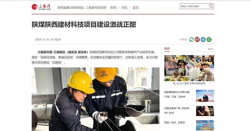 三秦網(wǎng)、秦聞 |陜煤陜西建材科技項目建設(shè)激戰(zhàn)正酣