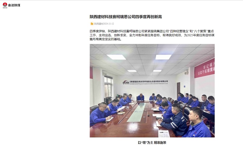 奮進(jìn)陜煤 | 陜西建材科技賽柯瑞思公司四季度再創(chuàng)新高