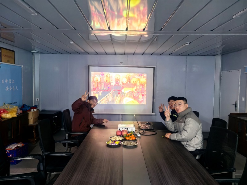 “水果、點心、餃子……我們幾個人在會議室里一塊看春晚,這是我第一次離開家人在外度過的春節,雖然有點遺憾,但還是很快樂、很充實?!?024年入職的鄭榮鑫笑道。“韓城龍門鎮冬天風很大,屋子外面天寒地凍,但是大家在安全巡查后,其樂融融地坐在一起吃餃子、嘮家常、看春晚,心里熱騰騰的?!?022年入職的高新講起那個除夕夜還是很感動。