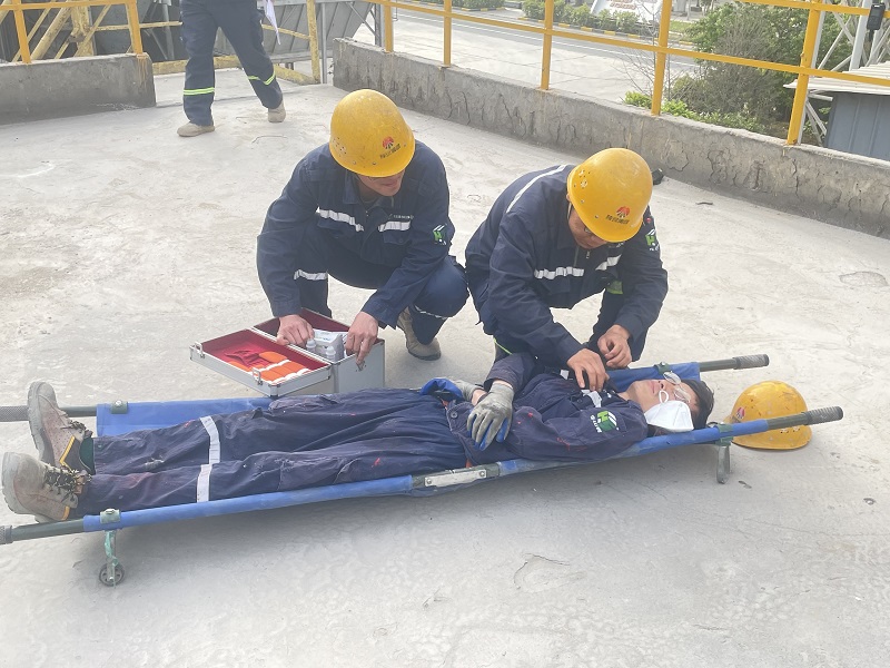 上午9時,演練正式開始。該公司制成車間現場作業人員在5#水泥磨內進行檢查時因通風不良昏倒,監護人員立即通過對講機向應急救援小組報告,應急救援組長第一時間下達啟動應急預案指令,迅速組織應急救援小組攜帶應急物資趕赴現場。抵達現場后,氣體檢測小組率先對磨內氧氣、一氧化碳等氣體濃度進行檢測,確認氧氣含量低于18%后,強制通風小組啟動設備實施持續通風,救援人員佩戴正壓式呼吸器進入磨內,將“傷員”安全轉移至通風區域,醫療救護小組隨即開展心肺復蘇、現場包扎等急救措施。整個演練過程歷時30分鐘,各小組配合默契、動作規范,精準完成了從事故發現到傷員救治的全流程處置,充分展現了應急隊伍的專業素養和實戰能力。